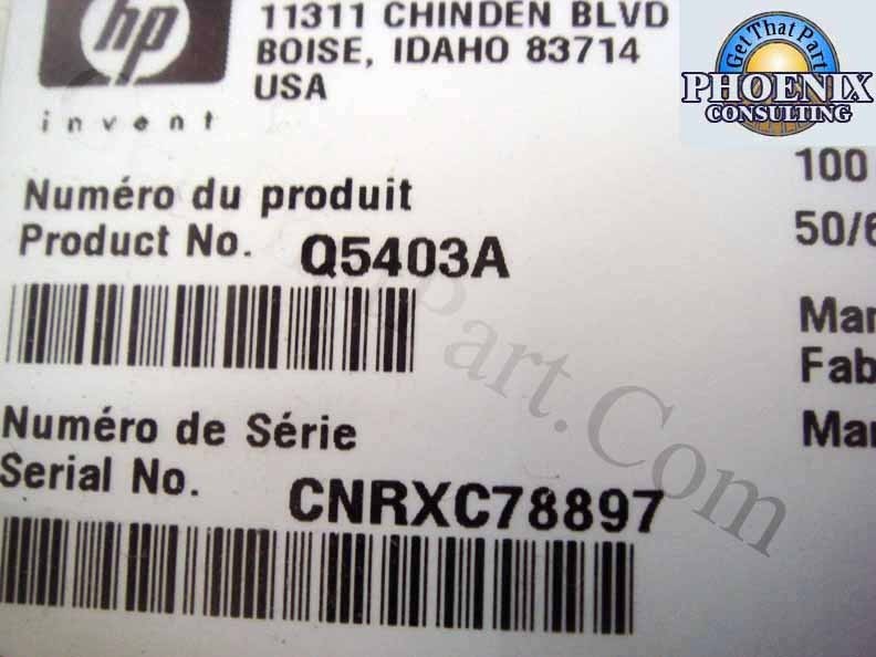 This unit came from a government facility. It is a used unit, but has been inspected, cleaned and tested thoroughly by our personnel. Pictures are of actual unit offered. Toner NOT included and paper tray shows chip on corner missing (see picture for details). This machines shows MPN Q5403A (which normally would include lower feeder), but is a Q5401A (no lower feeder or duplexer) machine. Only what is shown is offered. The unit we are offering includes the following features: